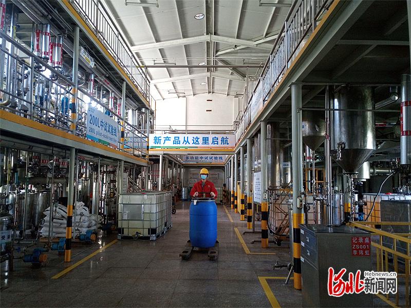 近日,位于曲周县的晨光生物科技集团股份有限公司中试中心内,工作人员正在运送半成品原料。李卫国摄